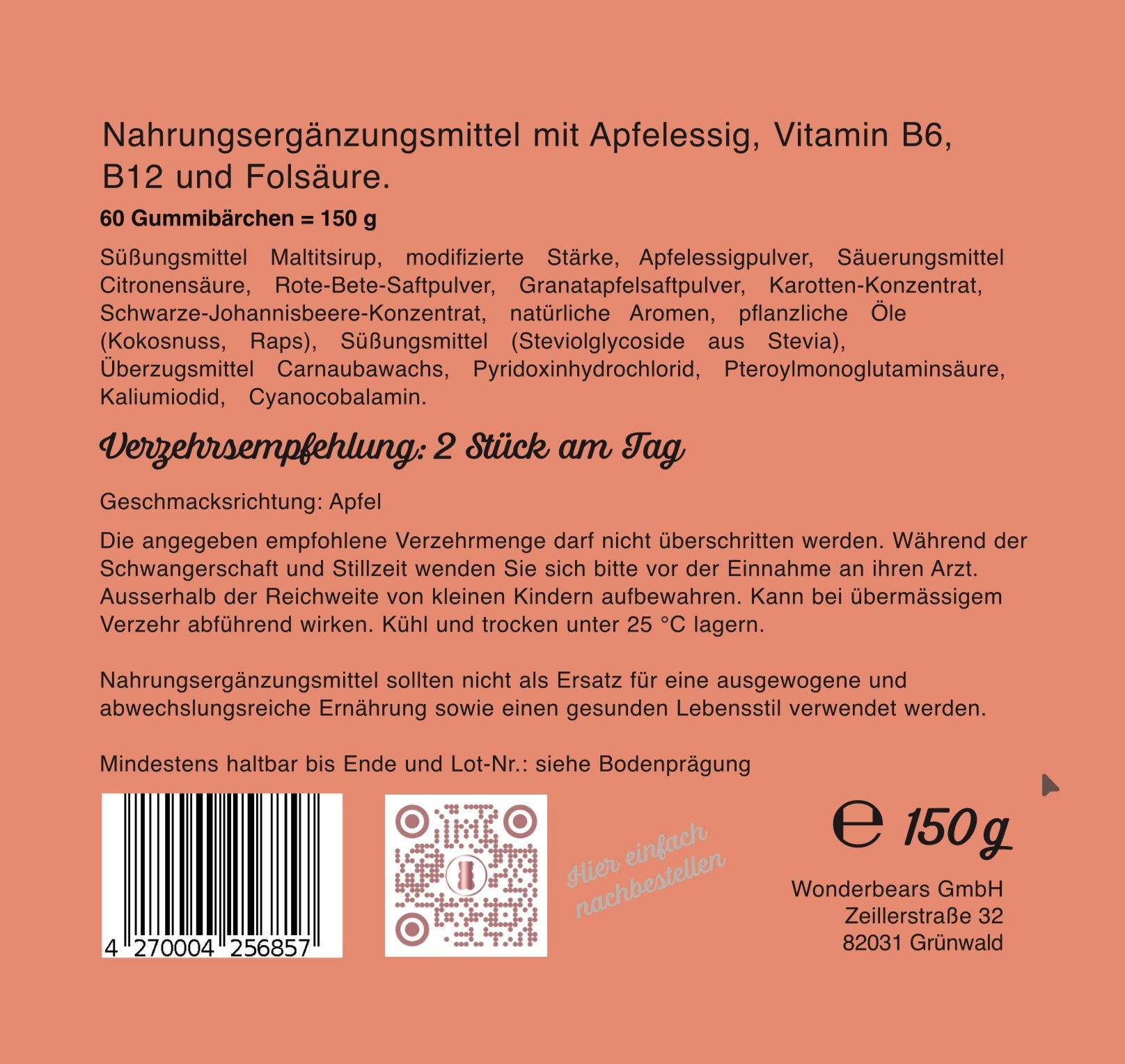 Unsere Burn Gummies enthalten als Hauptwirkstoff Apfelessig und die Superfoods Granatapfel und Rote Beete. Als hoch bioverfügbare Mikronährstoffe Vitamin B12, B6, Folsäure und Jod.
